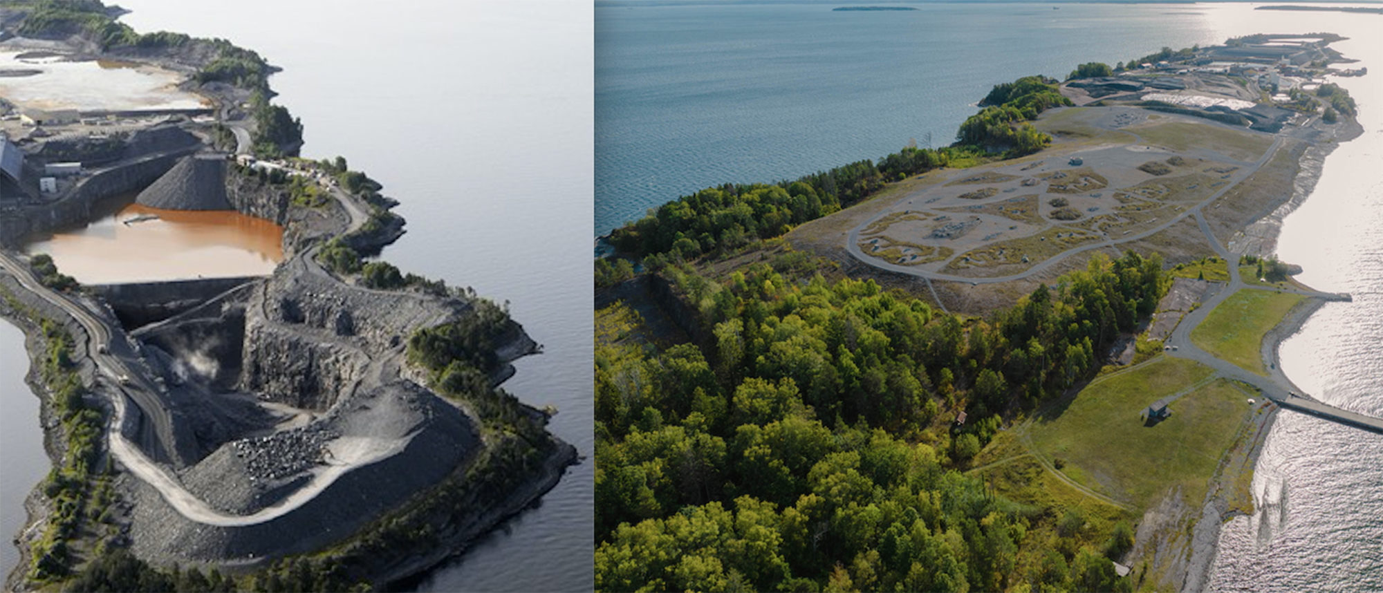 På Langöya driver NOAH ett av Nordens få stora mottagningsanläggningar för farligt avfall. Där processas flygaskan till en neutraliserad och giftfri gips som sedan trettio år har förvandlat det stora urgröpta kalkbrottet till en allt grönare ö genom att fylla igen de gamla schakten.