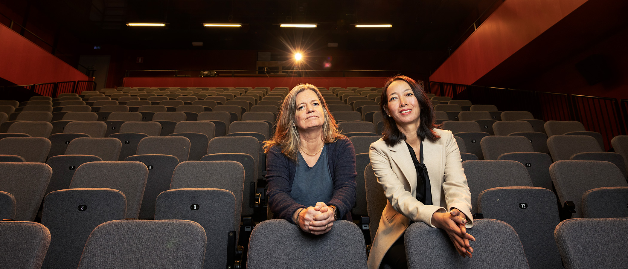 Vi går runt i det 6 000 kvadratmeter stora kulturhuset och hamnar i lokalen för film och teater. Där lyser tillfälligt ett tiotal strålkastare och ger en lätt bländande känsla på scenen.